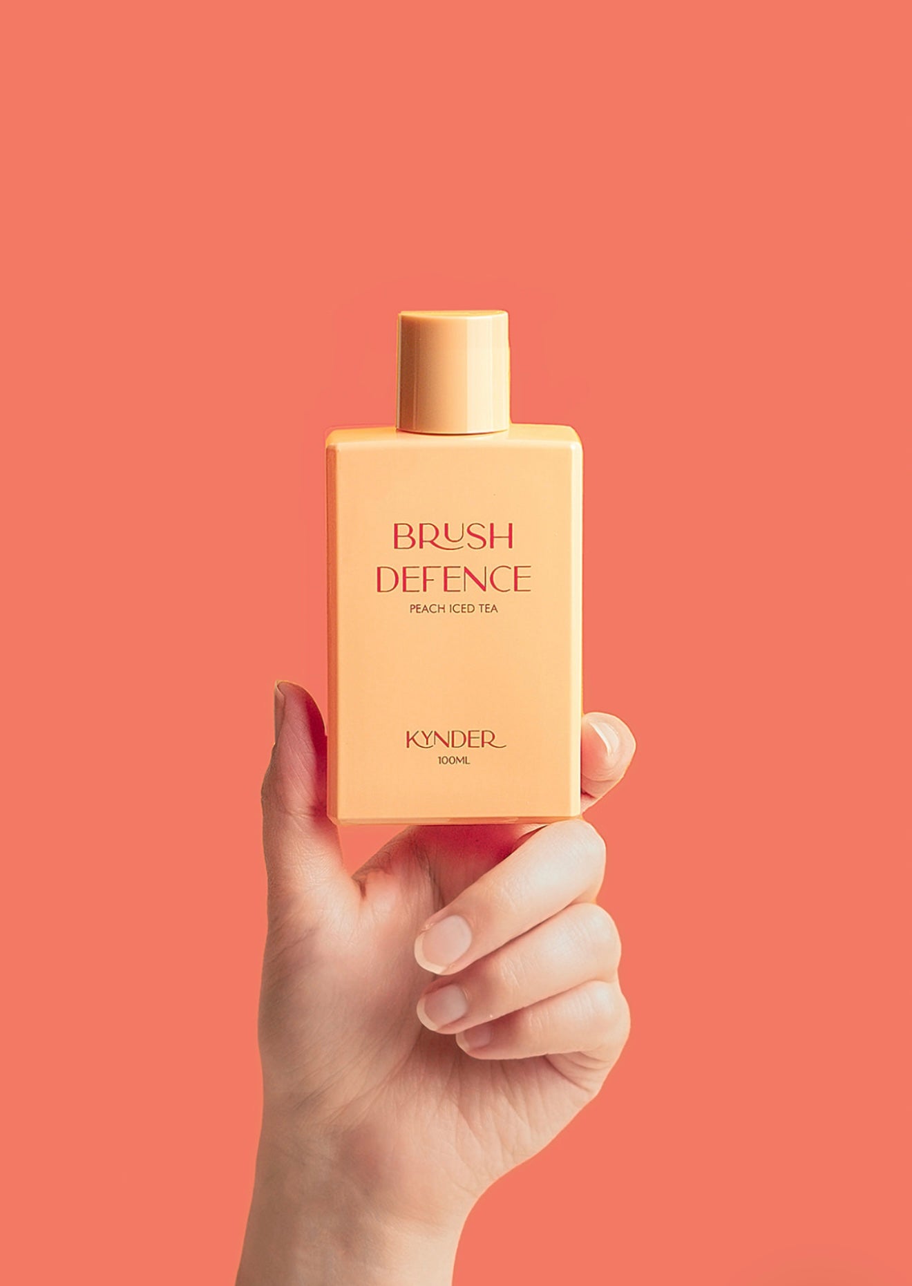 It only takes one whiff to go to beauty heaven with Peach Iced Tea. This no-rinse, quick-dry solution works its magic in just 60 seconds to cleanse + condition your makeup brushes so they look and feel good as new. It effortlessly whisks away 99.9% of bacteria to safeguard your skin from potential breakouts, maximising the life span of your brushes while minimising product build-up. Infused with Peaches, Brown Sugar and Vanilla; our Brush Defence will leave you with a craving for dessert. Not to mention the peach-coloured packaging glass bottle is so pretty it makes the perfect present to yourself or a loved one.