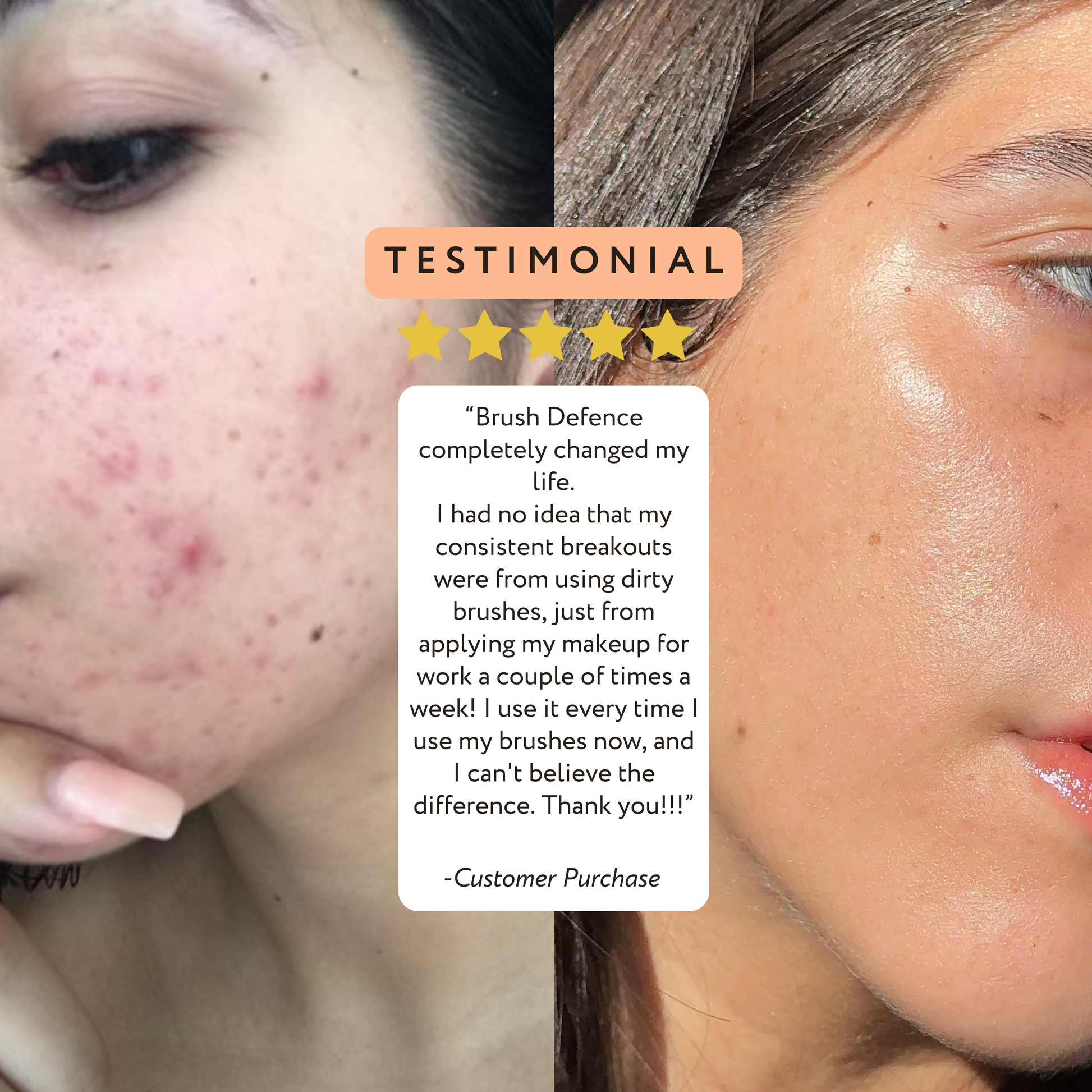 Trying to create a perfect canvas with stiff, dirty tools is impossible. That's why we created Brush Defence. This no-rinse, quick-dry solution works its magic in just 60 seconds to cleanse + condition your makeup brushes so they look and feel good as new. It effortlessly whisks away 99.9% of bacteria to safeguard your skin from potential breakouts, maximising the life span of your brushes while minimising product build-up. Infused with Vanilla & Strawberry, our Brush Defence will leave you with a craving for dessert. Not to mention the peach-coloured packaging glass bottle is so pretty it makes the perfect present to yourself or a loved one.