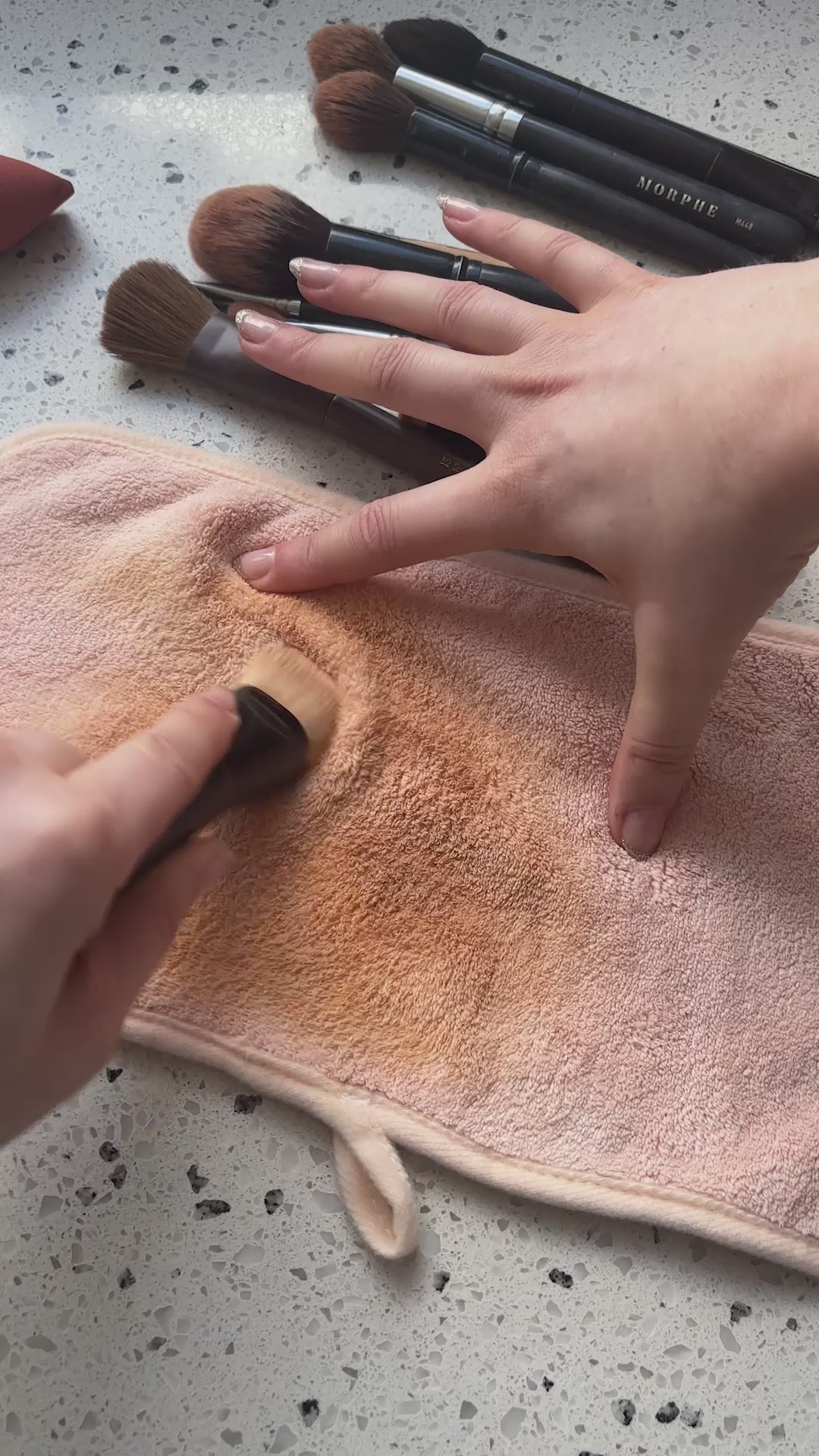 Our microfibres in our Base Towel were specifically design to help exfoliate your brush bristles and remove the product build up. Simply spritz your Brush Defence onto your Base Towel and swipe back and forth until your brush is clean. Wash your Base Towel with warm water and soap, allow to air dry and she'll be brand new when you need her next.